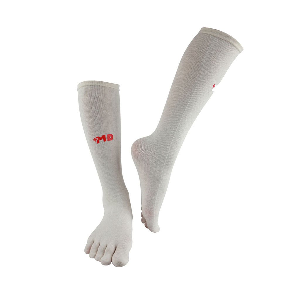 Silver Ion Technology??ofive finger socks are made with special yarn that is infused with silver ions. This helps to prevent the build of odor, keeping feet smelling great. Silver Ion Socks contain about 32.4% cotton, 24.5% polyester fiber, 22.7% viscose, 15.0% nylon, 5.4% elastic fiber. The synthetic yarn wicks sweat away from the skin into the cotton component which increases comfort of wearing if at use with appropriate membrane footwear, also out of the shoe which keeps your feet drier.