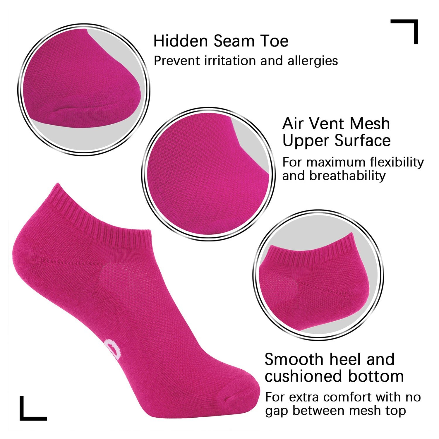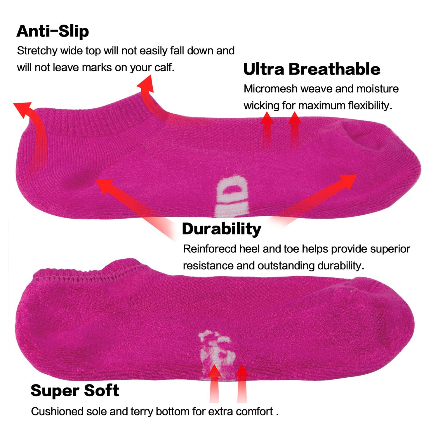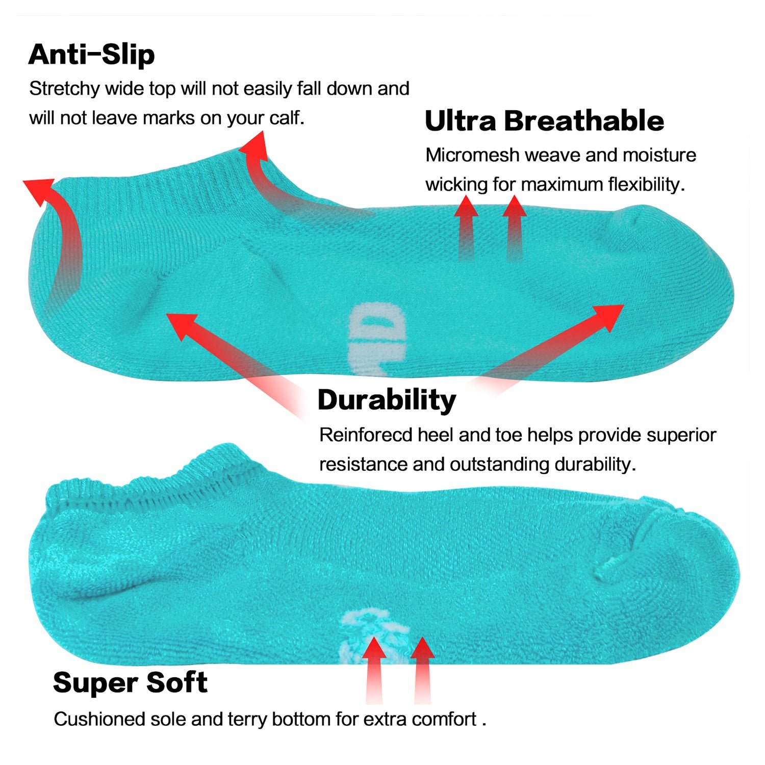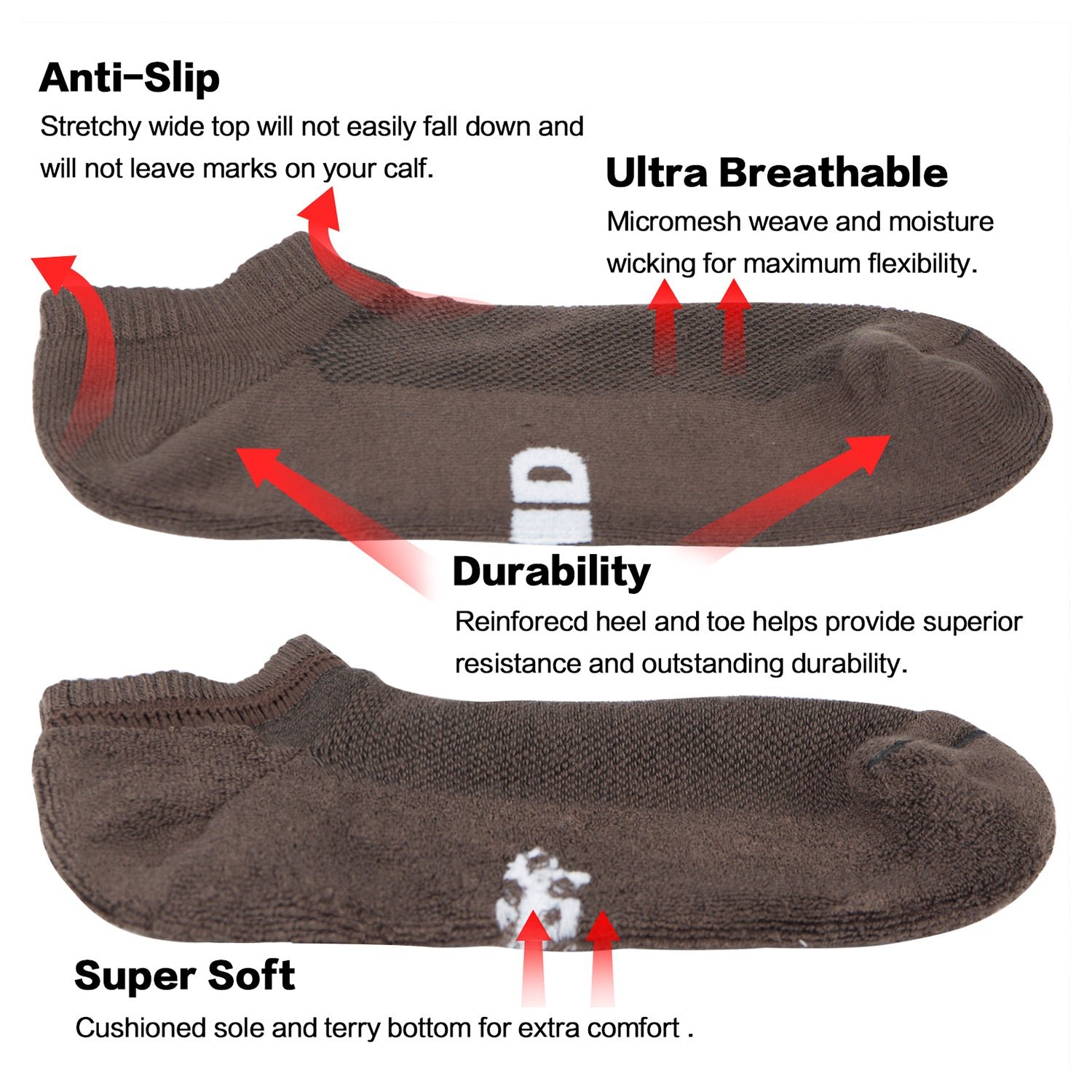 Thermo-regulating and Moisture Wicking – Breathable, absorbent, and confident to keep your feet cool and dry throughout the day.