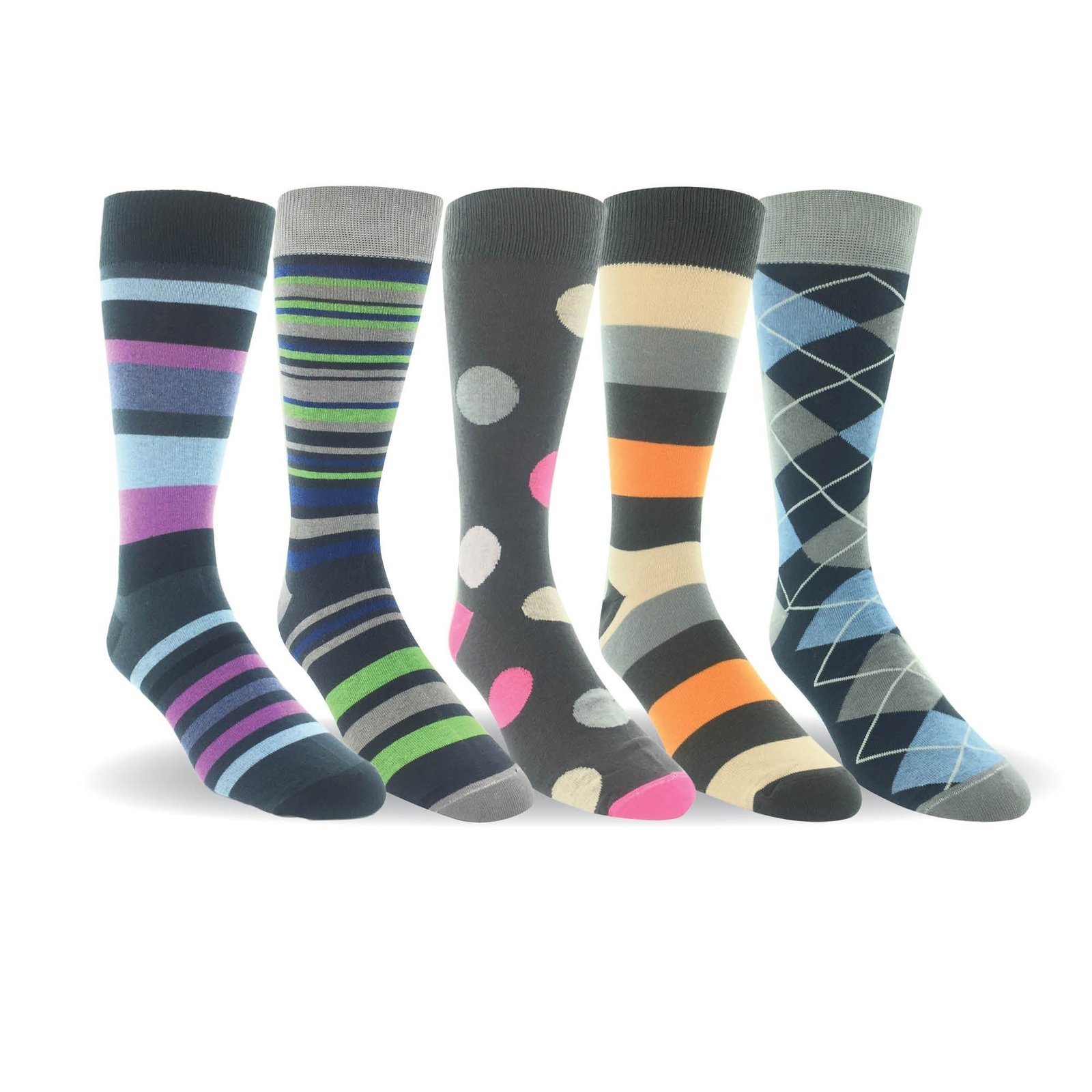 Men 5 Pairs Cotton Crew Dress Socks Argyle Flat Knit