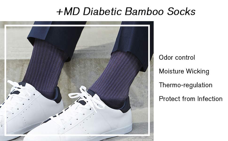 Non-Binding Bamboo Moisture Wicking Cushion Crew/Dress Socks Seamless Toe (2 Pairs)