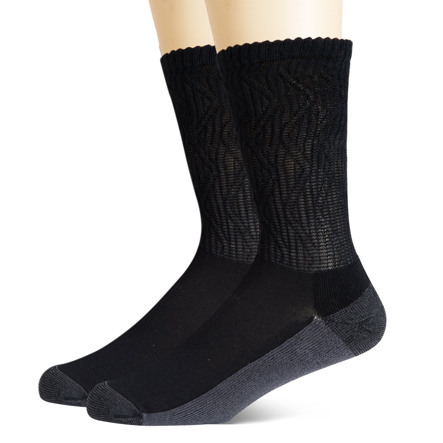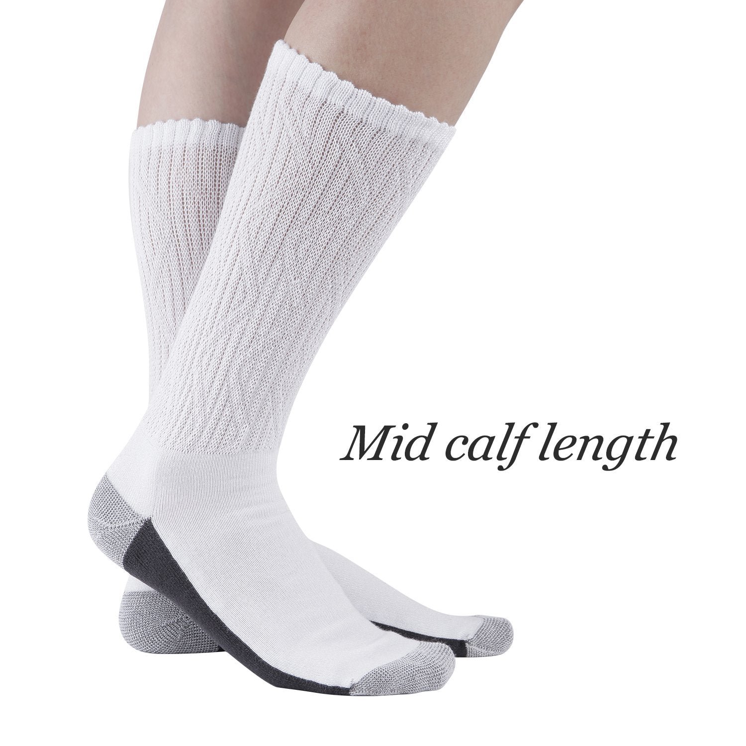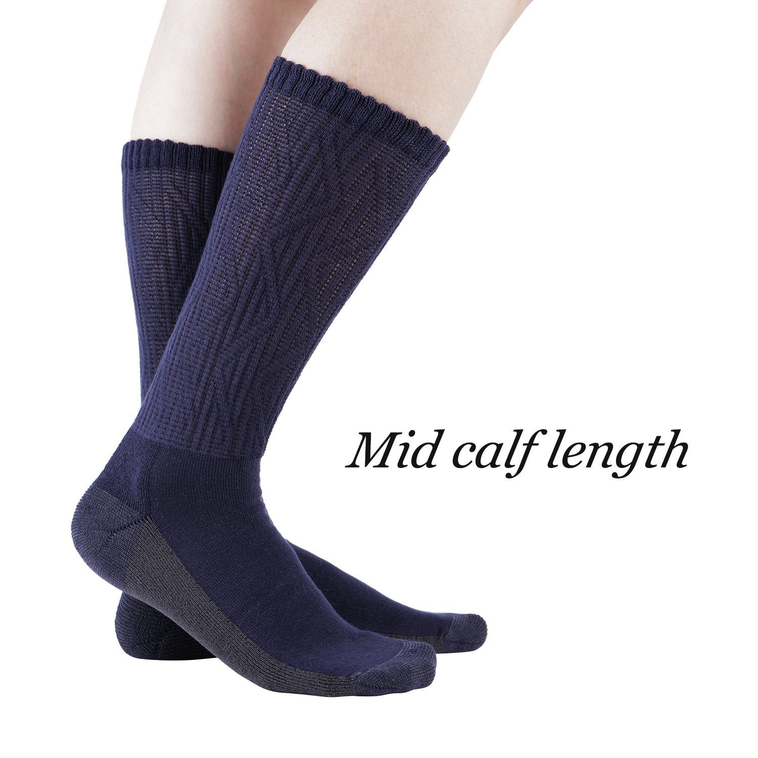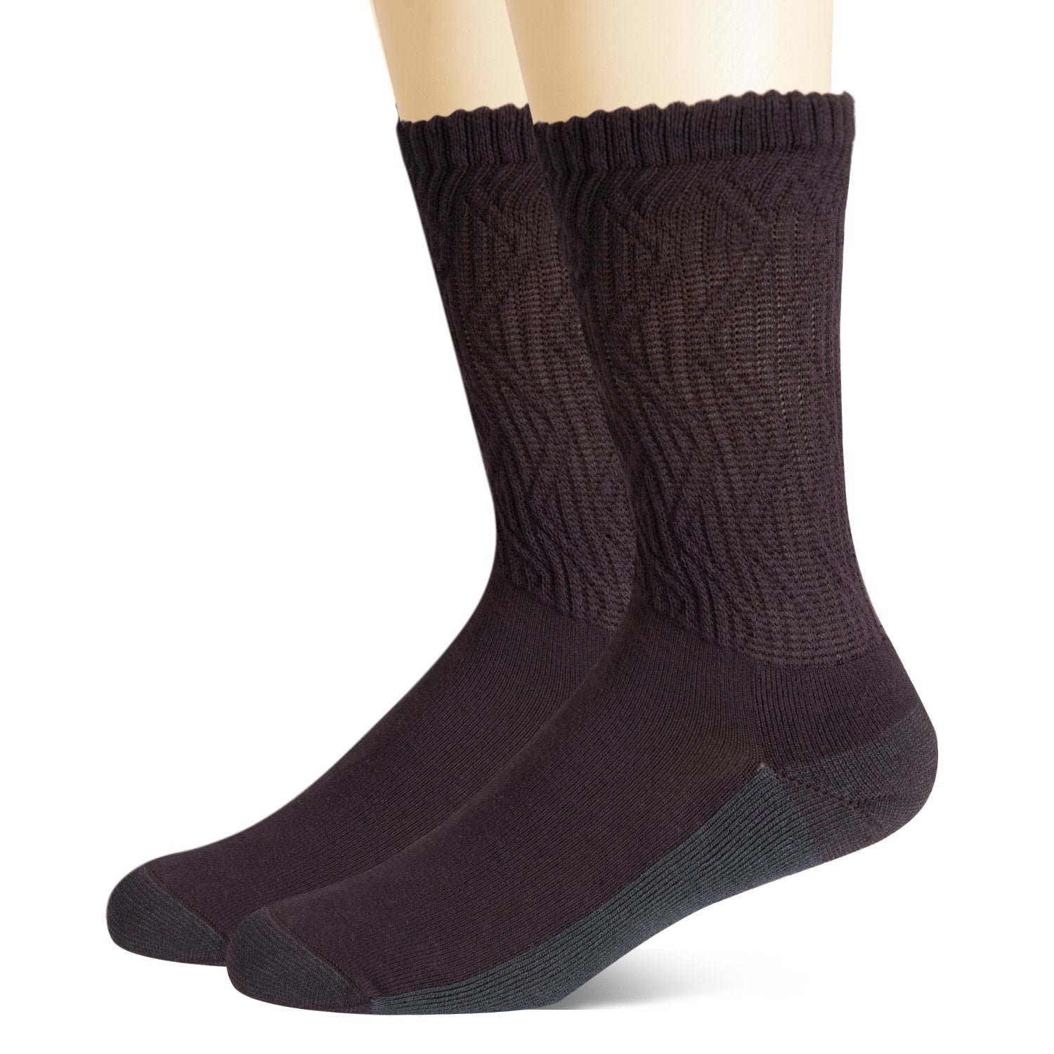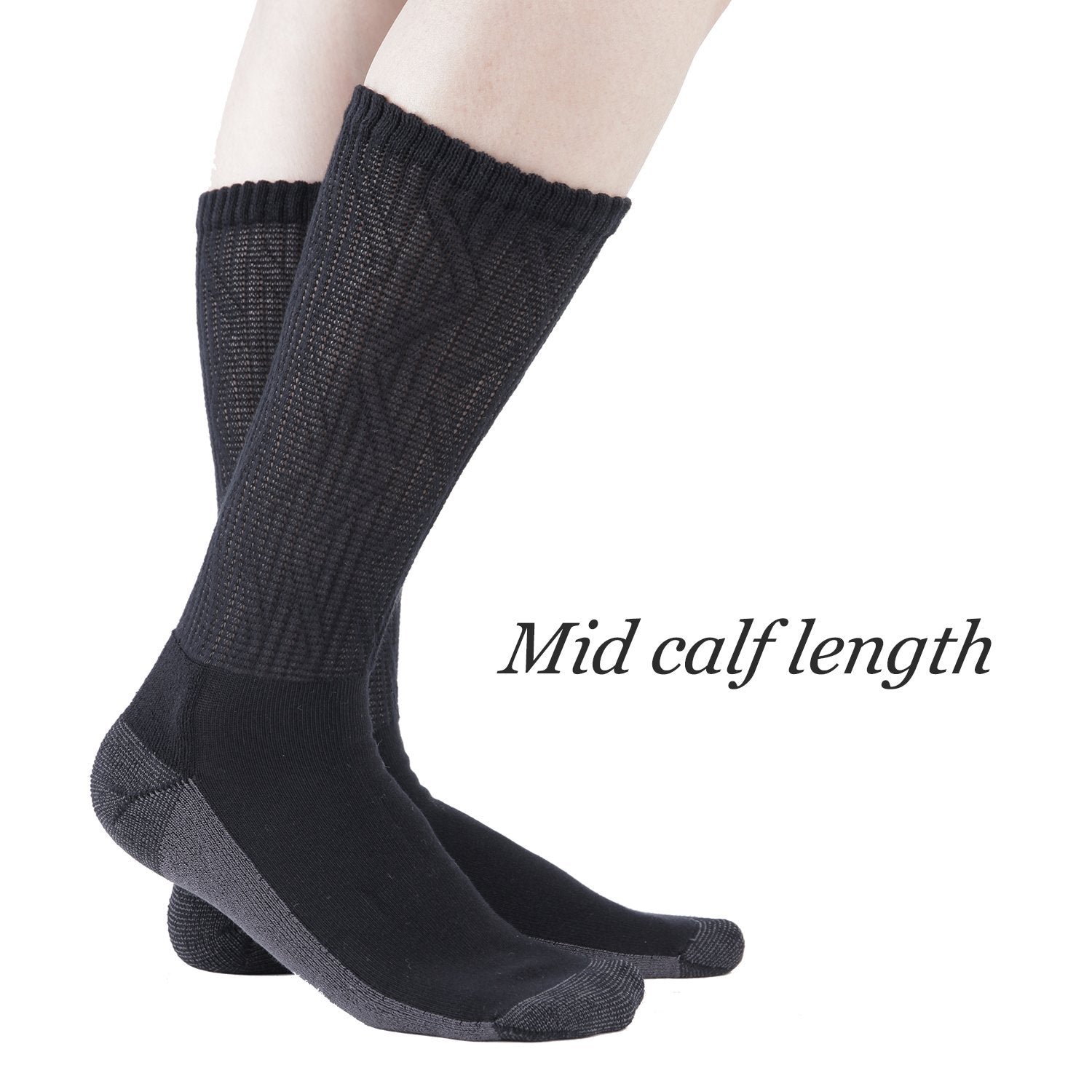 Non-Binding Bamboo Moisture Wicking Cushion Crew/Dress Socks Seamless Toe (2 Pairs)